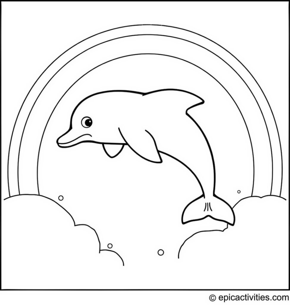 The dolphin’s sleek body, smiling face, and the vibrant colors of the rainbow will brighten up your coloring page.