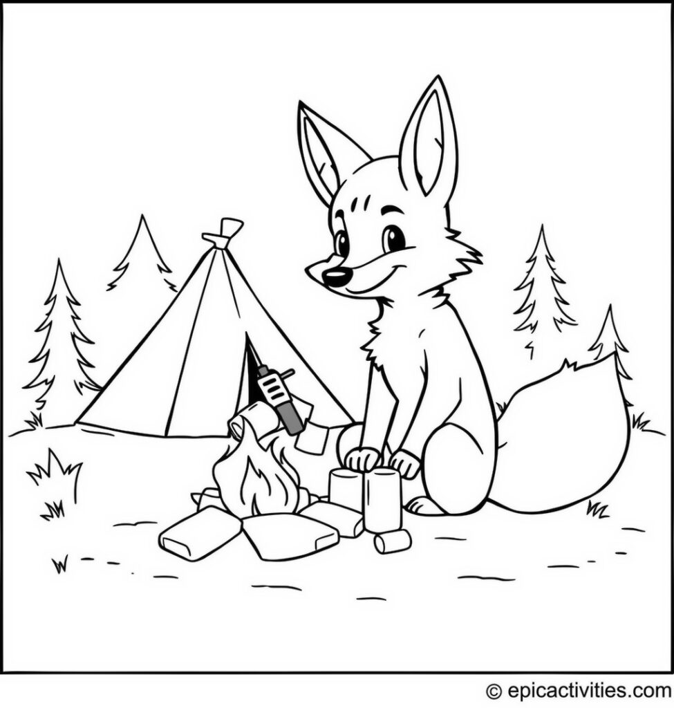 The cute coyote, the warm campfire, and the tasty marshmallows bring this coloring page to life.